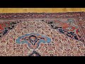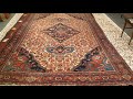 Framing the composition is a rich rust-red border, providing warmth and contrast while emphasizing the architectural strength of the design. The saturated yet harmonious palette—brick red, navy, turquoise, and green—creates a sense of grandeur without excess. Celebrated for their exceptionally dense weave and near-indestructible construction, antique Persian Bidjar rugs are often referred to as the “iron rugs of Persia.”
