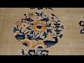 This exceptional Chinese Peking rug from the 4th quarter of the 1800s is a rare find—especially in its near-square shape, which enhances its versatility and presence. Woven in a rich wheat field color, the rug features symbolic and artistic elements that reflect traditional Chinese themes of fortune, prosperity, and longevity.