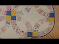 The quilt is executed with exceptionally fine hand stitching throughout, highlighting the maker’s technical skill and careful craftsmanship. Traditionally associated with themes of unity and celebration, the Double Wedding Ring pattern has long been one of the most cherished and visually striking quilt designs.