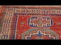 The intricate design is set against a vibrant red field, which is further adorned with charming small motifs scattered throughout, adding depth and visual interest. Kazak village rugs are renowned for their striking geometric designs, their robust construction, and the brilliant use of wonderful natural dyes and rich colors – qualities perfectly exemplified by this rug.