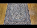 This rug is crafted from a luxurious wool pile on a cotton foundation, with silk woven throughout the design—testament to its high knot count and artisanal precision. Most notably, it carries the signature of “Habibian”, one of the most esteemed and collectible rug workshops in Nain.