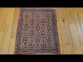 A vintage Persian Qum area rug from the mid-1900s, hand-knotted in a rare near square format and featuring an elegant all-over Herati pattern. The rug’s ivory field is beautifully balanced by a deep navy border, with geometric Herati motifs rendered in soft brown and dark red. Finely woven in the city of Qum, one of Persia’s most esteemed weaving centers, this piece exemplifies exceptional craftsmanship and refined design—ideal for collectors and interior spaces seeking timeless sophistication.