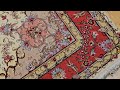 This finely woven Persian Tabriz area rug from the late 1900s showcases the timeless elegance of the classic floral "Garden Design." Set in an ivory field with a soft salmon border, this piece features delicate floral motifs rendered in taupe, blue, red, and lavender. The central medallion—composed of taupe, pink, pale lavender, and soft blue—is accented with shimmering silk highlights that add depth and luminosity to the intricate design. The corner spandrels echo the floral theme in subtle tones of lavender, taupe, and pink, also enhanced by silk accents. Masterfully hand-knotted, this rug is a sophisticated addition to any refined interior, perfect for collectors and design professionals seeking a balance of tradition and understated luxury.